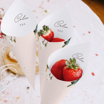 Si ya has escogido el diseño de la papelería para la fiesta de cumpleaños, resultará muy fácil completar el encargo de tus bolsas o conos para las chuches, ya que la cantidad de accesorios se calcula automáticamente en función del número de tarjetas de invitación que hayas seleccionado. Solo has de confirmar el pedido y personaliza tus conos festivos.