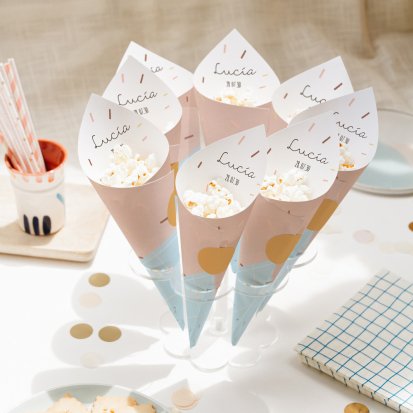 Estos conos, rellenos de dulces o sorpresas festivas, serán un éxito entre los invitados.