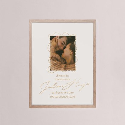 Una vez comentada la utilidad de los carteles, es necesario subrayar que se adaptan a la perfección a los gustos de los contrayentes. De preferir la decoración más clásica, hallarás opciones con el color blanco de fondo y las tipografías en tonos pastel o dorados.