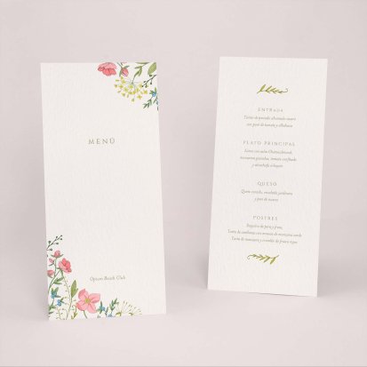 En un enlace nupcial todos los detalles son importantes. ¡También el menú de boda! Ya que en él recae la presentación de nuestro banquete. Si ya tienes decidido qué menú vas a servir en tu boda, solo te queda seleccionar un modelo de menú de boda físico para los invitados. Quedará sensacional si lo combinas con la invitación de boda.