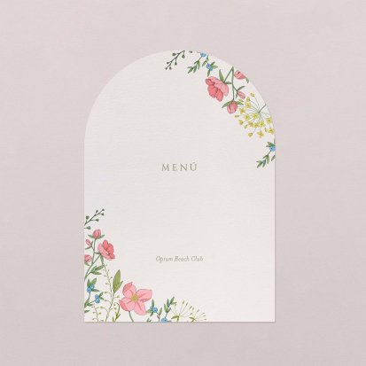 Los diseños florales quedarán espectaculares en las ceremonias al aire libre. Los menús con ilustraciones son excelentes para cualquier momento del año. ¡Y muy originales! En cambio, los de color blanco son los más clásicos. Siempre son un acierto por su faceta atemporal. Lo más recomendable es que te decidas por un menú adaptado a la estación del año de tu boda.