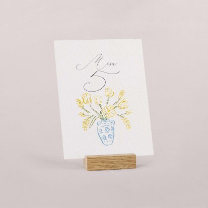 Una de las premisas a considerar es crear una mesa armoniosa. Esto se consigue manteniendo un estilo único en cada una de ellas y apostando por elementos que combinen cromáticamente. Apuesta por números de mesa boda con diseños minimalistas y en colores pastel que sean fáciles de combinar.