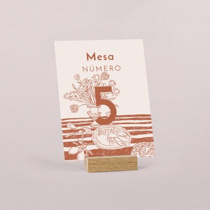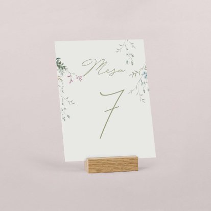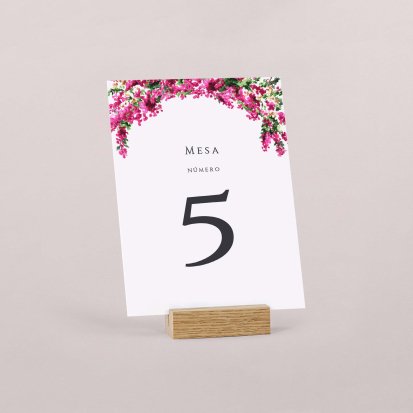 Una de las premisas a considerar es crear una mesa armoniosa. Esto se consigue manteniendo un estilo único en cada una de ellas y apostando por elementos que combinen cromáticamente. Apuesta por números de mesa boda con diseños minimalistas y en colores pastel que sean fáciles de combinar.