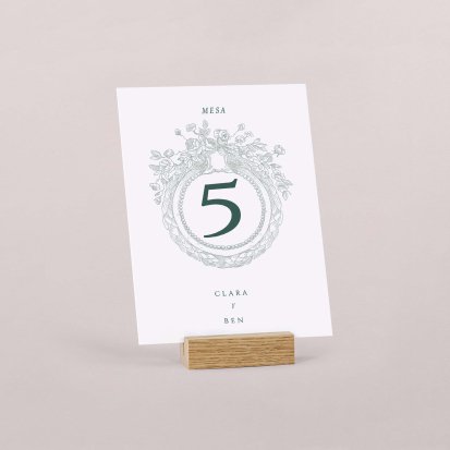 Una de las premisas a considerar es crear una mesa armoniosa. Esto se consigue manteniendo un estilo único en cada una de ellas y apostando por elementos que combinen cromáticamente. Apuesta por números de mesa boda con diseños minimalistas y en colores pastel que sean fáciles de combinar.