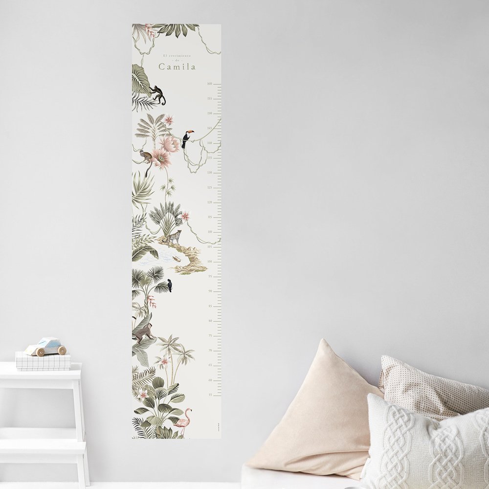 Sigue con ternura el crecimiento de tu peque, año tras año, con esta preciosa regla de altura ilustrada. Graduada de 55 a 160 cm, puedes personalizarla con el nombre de tu hijo o hija. Una bonita idea de regalo para ofrecer o regalarse, perfecta como decoración de pared en la habitación del benjamín de la familia.