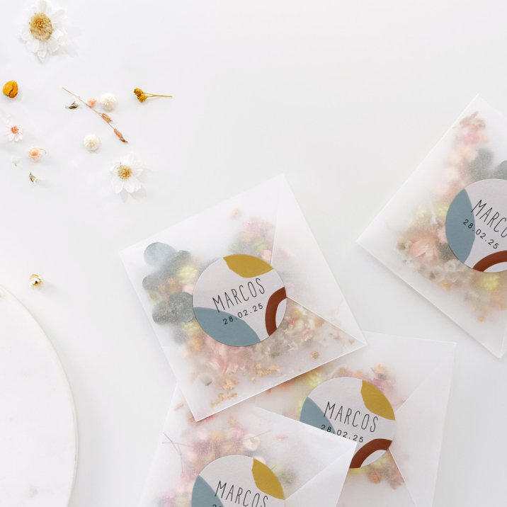 Esta gran pegatina es ideal para sellar bonitas bolsas de regalo o para decorar cajas de dulces, velas, jabones y otros detalles de pequeño tamaño... ¡Da rienda suelta a tu imaginación!