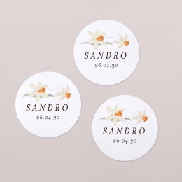 Una dulce corona de flores de narcisos en colores amarillo y verde decora la invitación Yellow spring. Esta invitación de comunión de tonos cálidos será perfecta para anunciar una celebración en primavera o verano.