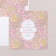 Flores en tonos pastel rosa, naranja y amarillo se mezclan en la invitación de bautizo Allegria. Una presentación colorida, perfecta para el anuncio del bautizo de tu bebé en primavera.