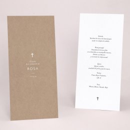 Sobre un fondo elegante y sobrio kraft, el recuerdo de Comunión Natan decorado con una simbólica cruz blanca, que presagia la ceremonia que está por llegar. Este modelo puede ser personalizado con una bella fotografía de tu peque.