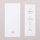 Dibujados en un estilo minimalista y realzados con finos detalles dorados, los bonitos símbolos de la invitación Pequeña capilla - Oro encantarán a los familiares que invites a la comunión de tu hijo. Un modelo elegante y depurado a medio camino entre tradición y modernidad.