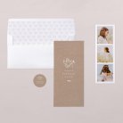 Este recordatorio se compone de una tarjeta doblada por la mitad y un fotomatón, deslizado en el interior. Tus seres queridos podrán utilizar el fotomatón como marcapáginas o exponerlo en su nevera...
