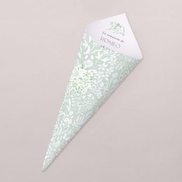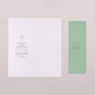 Muchas flores de primavera en tono verde decoradas con delicados toque en oro para la invitación de comunión Amanda, ideal para una celebración en primavera o en verano.