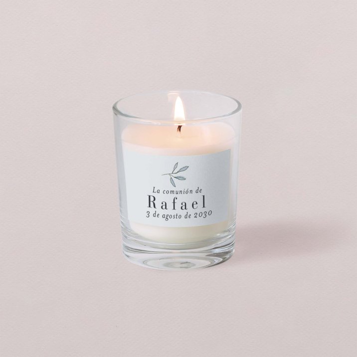 Regalad a vuestros invitados un delicado y perfumado recuerdo de la comunión de vuestro pequeño: la vela personalizada con toques afrutados.