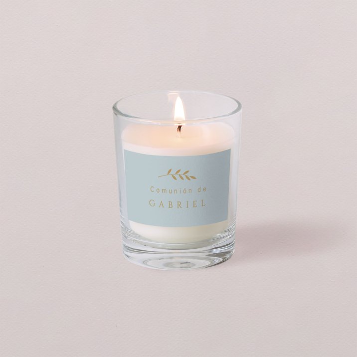 Regalad a vuestros invitados un delicado y perfumado recuerdo de la comunión de vuestro pequeño: la vela personalizada con toques afrutados.