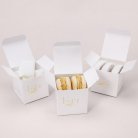 Tampoco vienen con el contenido. Como sugerencia podéis rellenarlas con nuestras peladillas elaboradas artesanalmente en el sur de Francia (propuestas como accesorio por separado). Os aconsejamos llenarlas con 20 peladillas por caja (50 g).