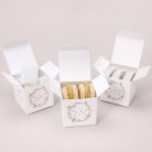 Tampoco vienen con el contenido. Como sugerencia podéis rellenarlas con nuestras peladillas elaboradas artesanalmente en el sur de Francia (propuestas como accesorio por separado). Os aconsejamos llenarlas con 20 peladillas por caja (50 g).