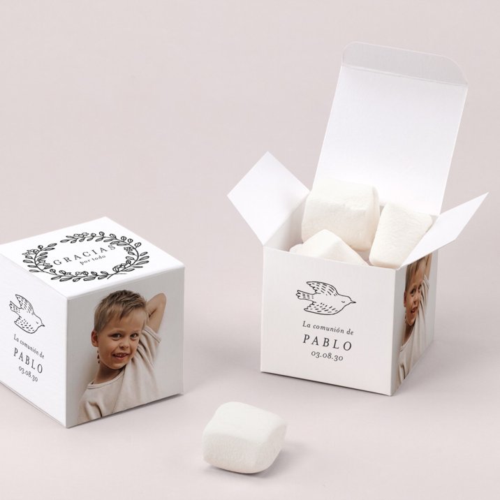 Caja sorpresa para rellenar con lo que quieras y entregar un bonito detalle a tus invitados como recuerdo de la comunión de vuestro peque.
