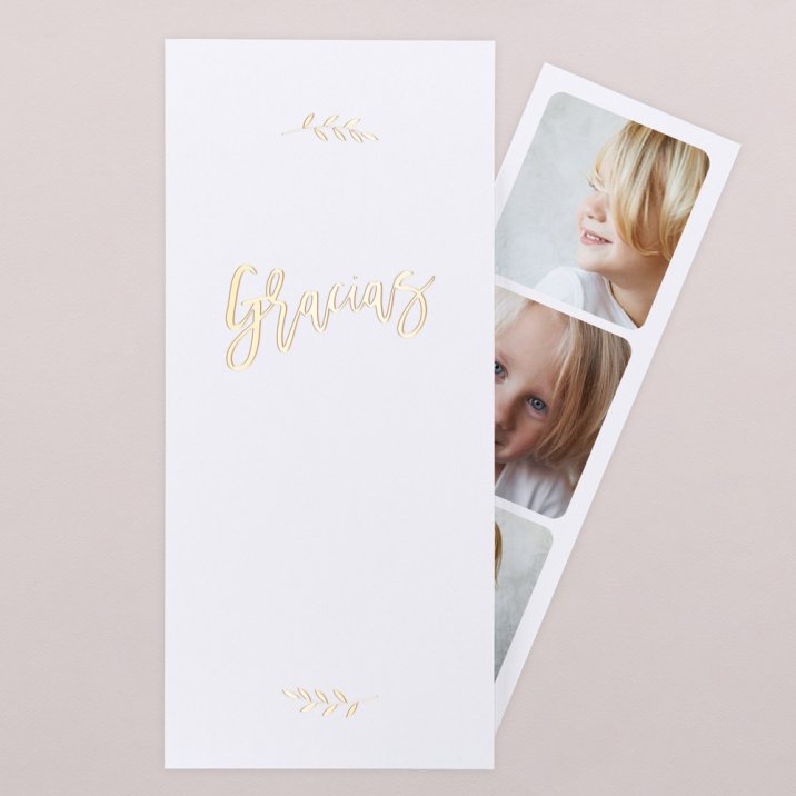 Impreso en papel mate premium texturizado para darle un toque vintage (indicamos no es papel fotográfico). El fotomatón se imprime a dos caras, incluye 3 fotos en la cara y el texto en el dorso.