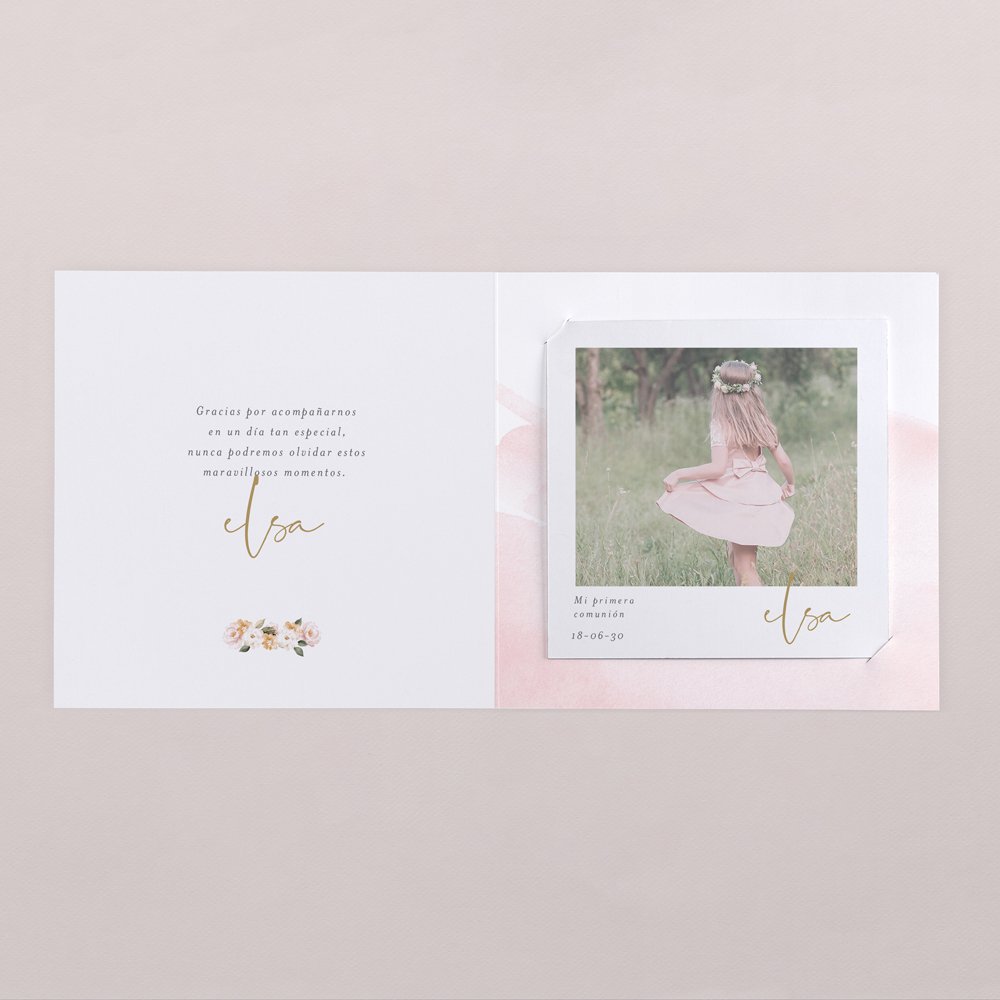 Impresa en papel mate premium texturizado para darle un toque vintage (indicamos no es papel fotográfico). La polaroid se coloca en el interior del díptico de la tarjeta.