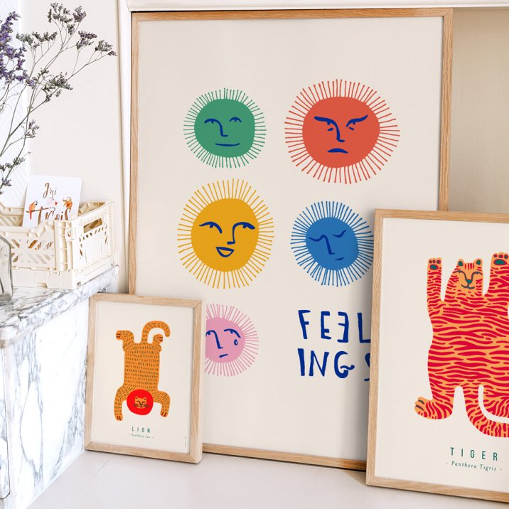 Ilustrados con una paleta de colores vivos, los expresivos soles del póster Mis emociones ayudarán a tu hijo a expresar sus sentimientos cotidianos. Además de ser divertido, este póster decorativo aportará un toque artístico a su cuarto.