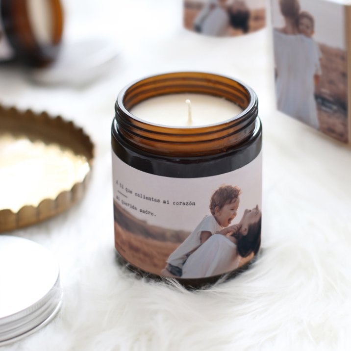 La vela está hecha en Francia. La recibirás en una caja kraft y con dos etiquetas adhesivas que deberás pegar tanto en la vela como en la caja. Las etiquetas las podrás personalizar con una fotografía y un pequeño texto o mensaje. Tras su uso, puede volver a cerrarse gracias a su tapa metálica.