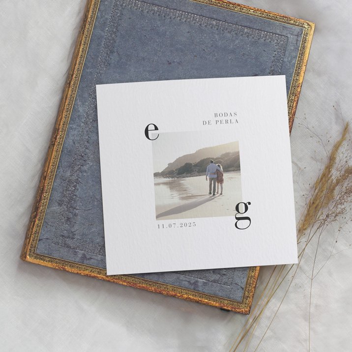 Con esta tarjeta de invitación de aniversario de boda, simple y elegante, invita a tus seres queridos a celebrar vuestri aniversario de boda de perla.