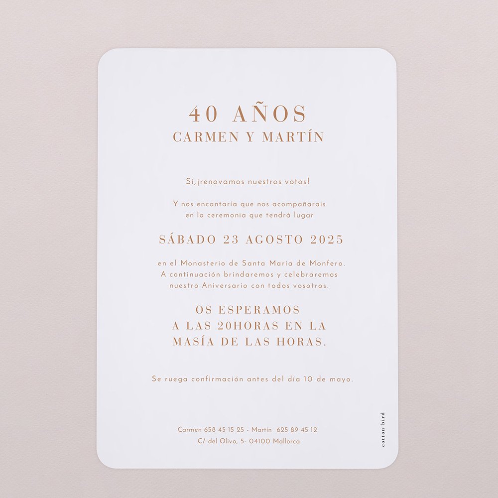 Invita a tu familia y amigos a celebrar vuestro 40 aniversario de boda con esta preciosa invitación para el aniversario de boda y su delicada tipografía, destacando vuestra foto.