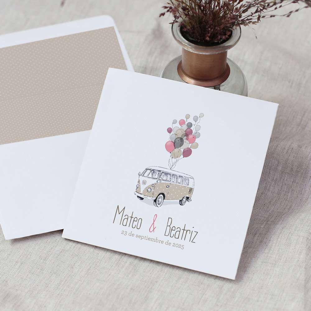 Invitación en cartulina mate de 280 grs. Imprimiremos tu texto en el interior de la invitación.