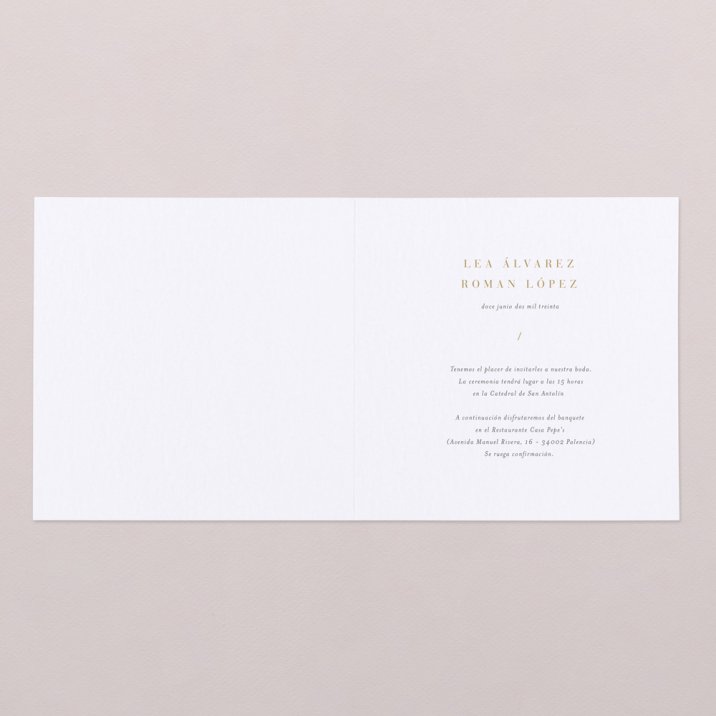 Invitación de boda formato díptico, en el interior encontráreis el texto.