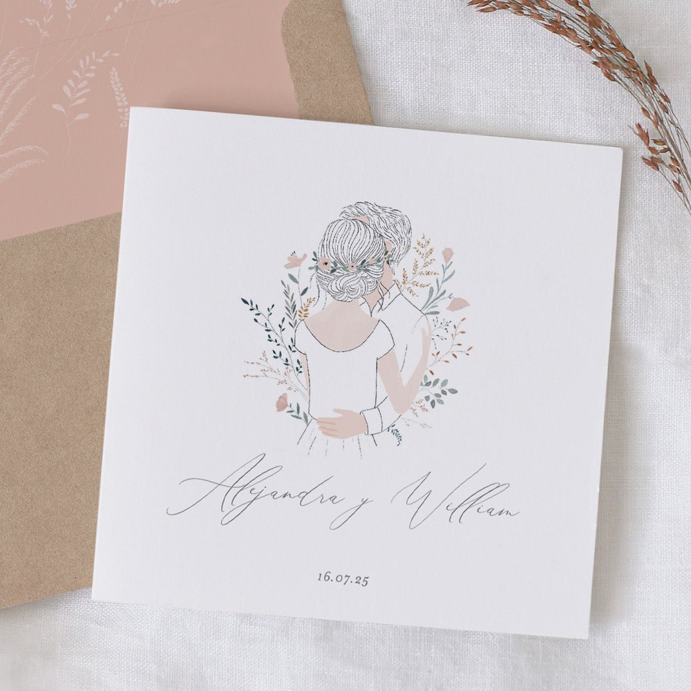 Invitación de boda en formato díptico, podréis personalizar las 4 caras.