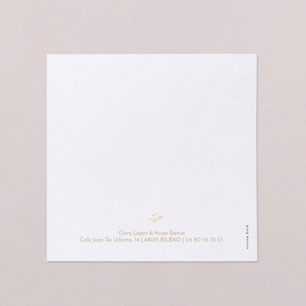 Letras elegantes y motivos florales en acabado oro en la invitación Flor de Naranjo II, un modelo muy atractivo para anunciar vuestra boda de forma especial.