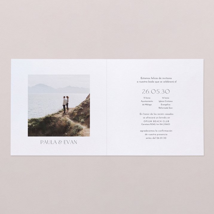 Invitación de boda en formato díptico, podréis personalizar las 4 caras.