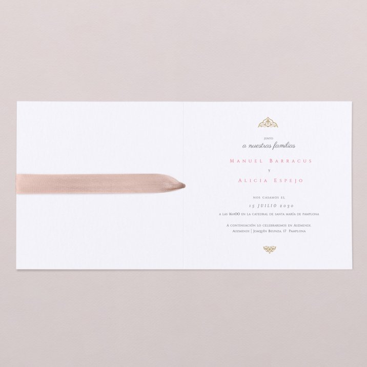 Una invitación de boda elegante y oriental para invitar a vuestros seres queridos el día de vuestra boda. El modelo Olympias encantará a todos.