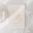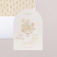 Con un romanticismo atemporal, la invitación de boda Richelieu presenta un delicado ramo de flores dispuesto en un jarrón antiguo. Un diseño lleno de inspiración, donde vuestros nombres aparecen realzados en dorado, perfecto para invitar a una recepción chic y encantadora.