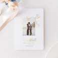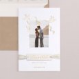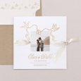 En la invitación de boda Sparrow, dos pajaritos llevan entre sus picos las alianzas, delicadamente atadas a una cinta. Un diseño lleno de romanticismo, realzado con elegantes detalles dorados, perfecto para anunciar vuestro “sí” con toda la emoción y la elegancia del gran día.