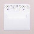 Una invitación de boda en formato horizontal plegada en tres partes y acompañada de su etiqueta personalizada. Al abrirla, tus seres invitados descubrirán los detalles de tu gran día.