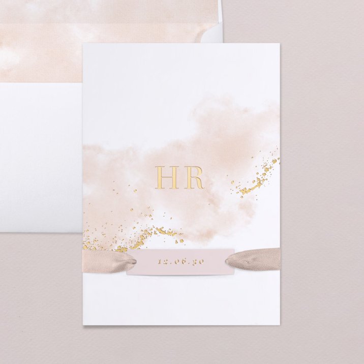 - Una invitación, en forma de tarjetón con una etiqueta pequeña con la fecha de la boda unida a la invitación por un lazo a conjunto (lazo/cordón no incluido en el precio)