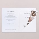El modelo pocket incluye una invitación de boda en formato díptico, un fotomatón y 2 tarjetas para información adicional (para el programa, la cena, hoteles, mapas...).