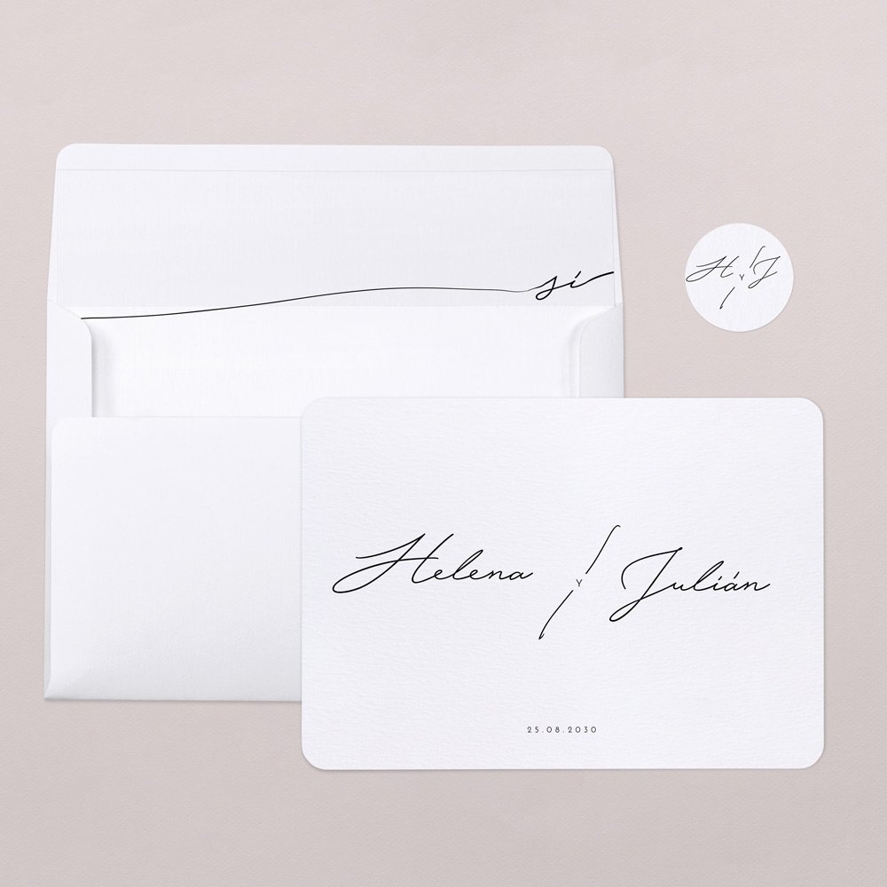 Invitación de boda formato tarjetón tradicional con los cantos redondos, diseño minimal y elegante. Para complementar la invitación puedes incluir el set complemento de la invitación de boda - 3 tarjetas para información adicional.