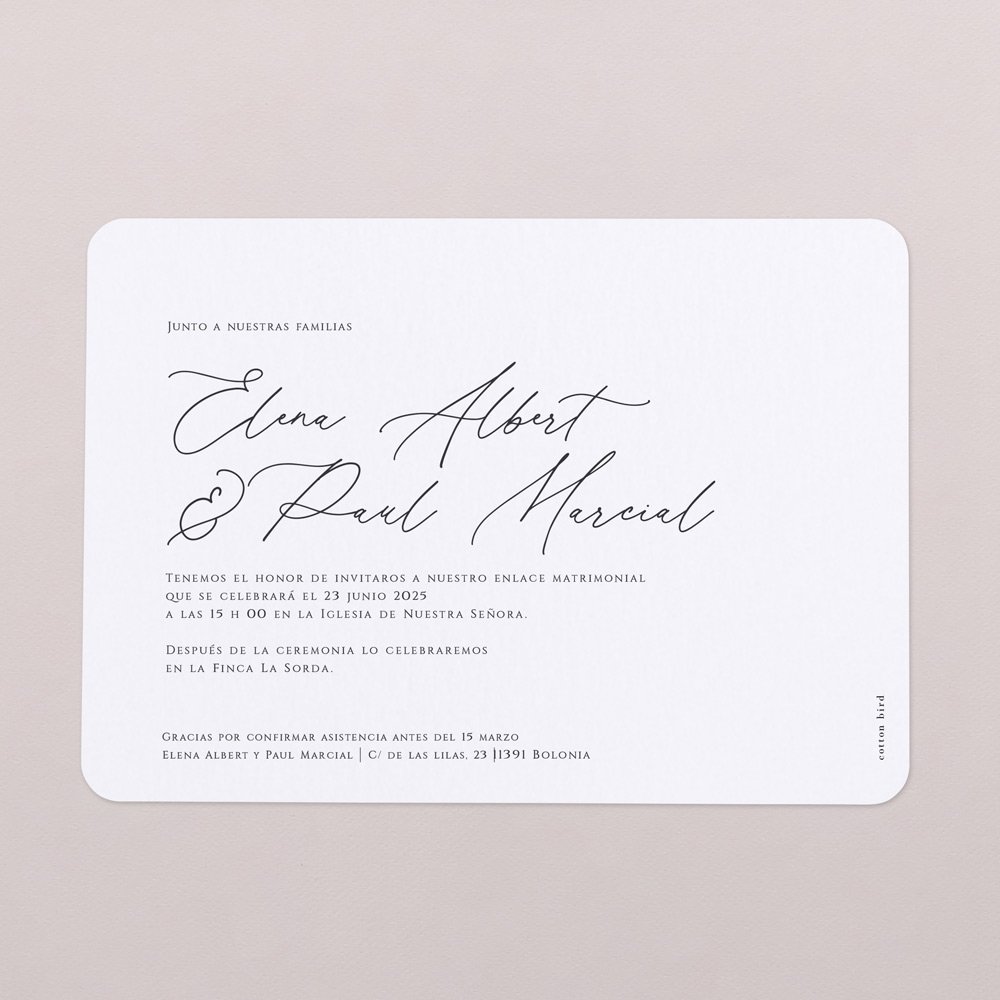 Esta invitación es un tarjetón con los cantos redondos, formato apaisado.