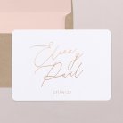 Una tipografía fina y elegante en acabado Cobre, para realzar vuestros nombres... Una invitación de boda elegante y original, os gustará el modelo Alpha.