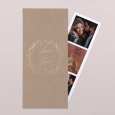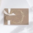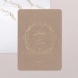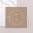 En esta invitación, vuestros nombres aparecerán escritos en el interior de una corona de flores. Este elegante modelo campestre, delicadamente perfilado y realzado con acabados dorados, anunciará con elegancia vuestra próxima unión.