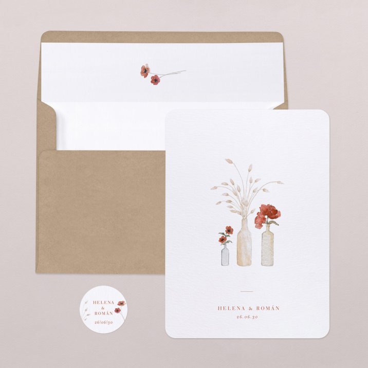 Esta invitación es un tarjetón con los cantos redondos, formato vertical.