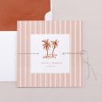 Rayas modernas y palmeras esbeltas se dan cita en la invitación de boda La Gomera. Una creación moderna con aires veraniegos, ideal para una boda celebrada en el sur.