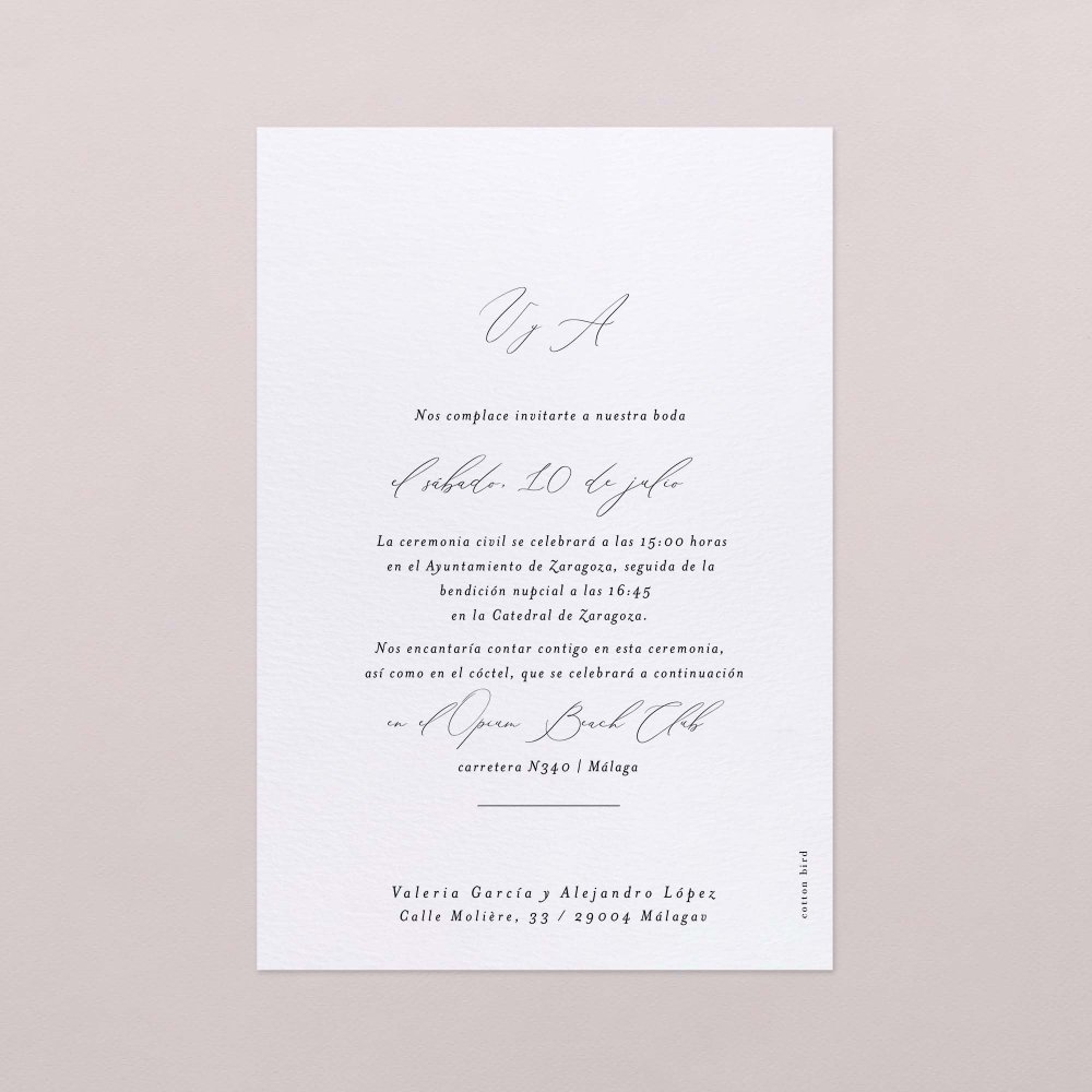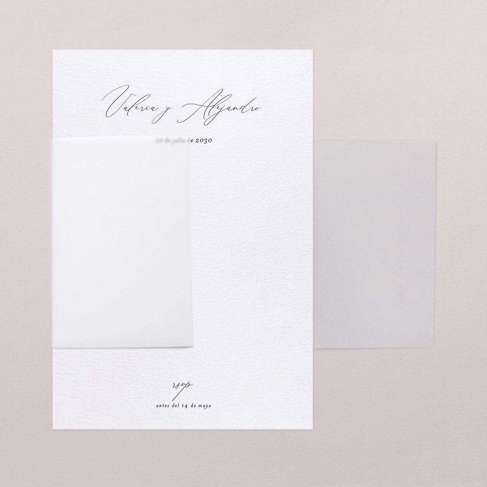 Esta invitación incluye un tarjetón y un papel vegetal doblado en tres partes.
