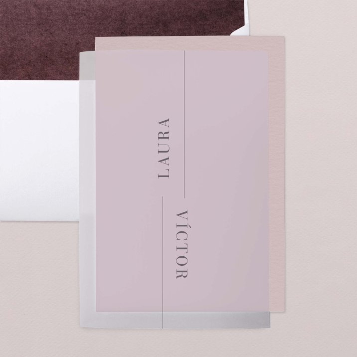 Esta invitación incluye un tarjetón y un papel vegetal díptico personalizable.