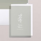 Papel vegetal impreso en color verde, vuestros nombres y una ilustración vegetal... Además todo el resto de información en el tarjetón interior. El modelo Peppermint será una sorpresa para vuestros familiares y amigos.