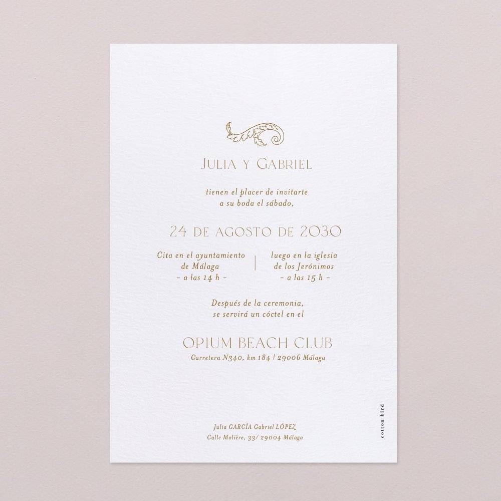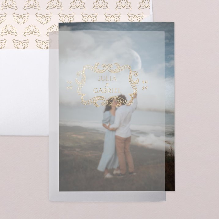 Esta invitación incluye un tarjetón y un papel vegetal díptico personalizable.