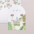 Esta invitación incluye un tarjetón y un papel vegetal doblado en díptico.