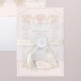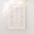 Esta invitación incluye un tarjetón y un papel vegetal doblado en díptico.